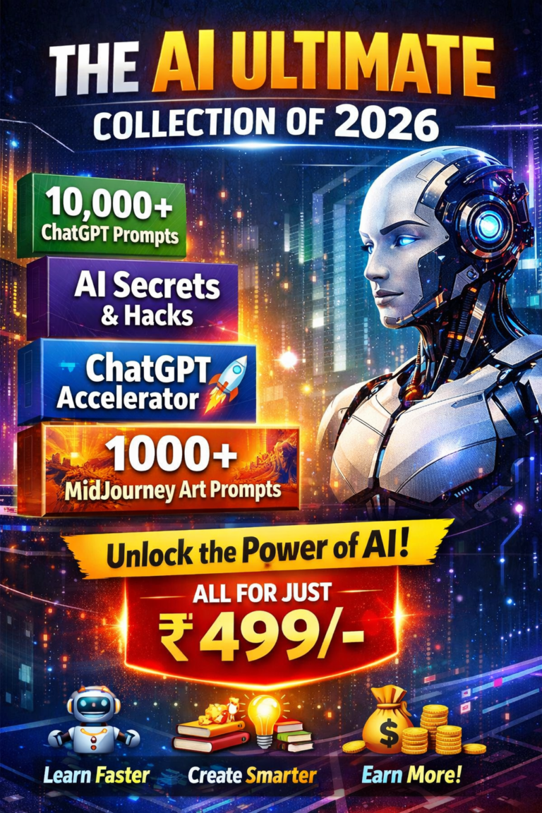 The AI Ultimate Collection 2026 is a premium digital bundle that includes 10,000+ ChatGPT prompts, AI Secrets & Hacks, the AI ChatGPT Accelerator, and 1,000+ MidJourney art prompts.